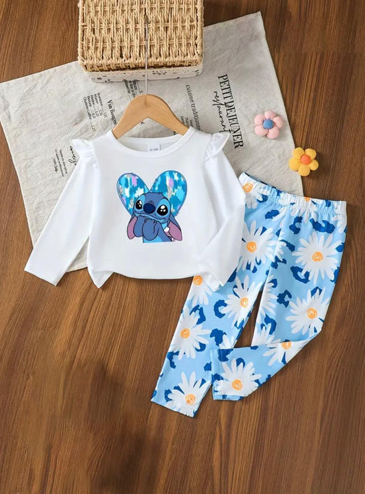 Girls Cartoon Heart Top & Floral Trouser Set