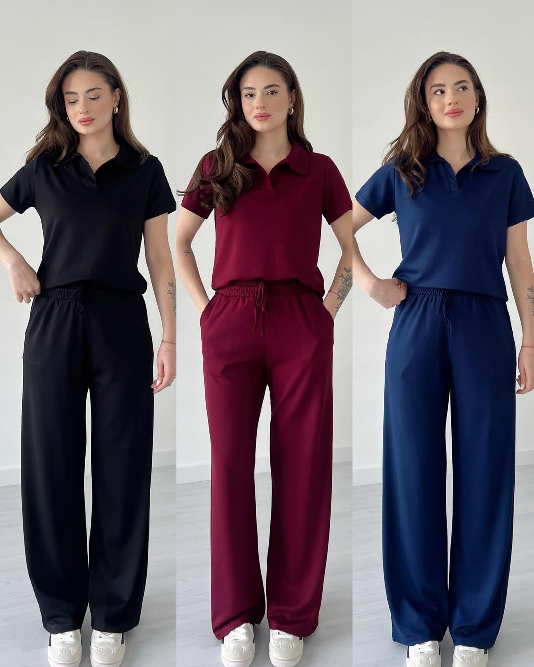 Summer Casual Women's Polo Collar Top & Trouser Set